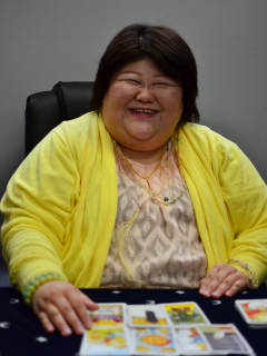 「占いの館 千里眼 松山大街道店」で特に人気の高い先生のひとりである眞希緒(まきお)先生は、タロットカードと占星術の使い手。この2つの占術を組み合わせた鑑定が「よく当たる」と評判で、リピーターを多数抱える先生です。